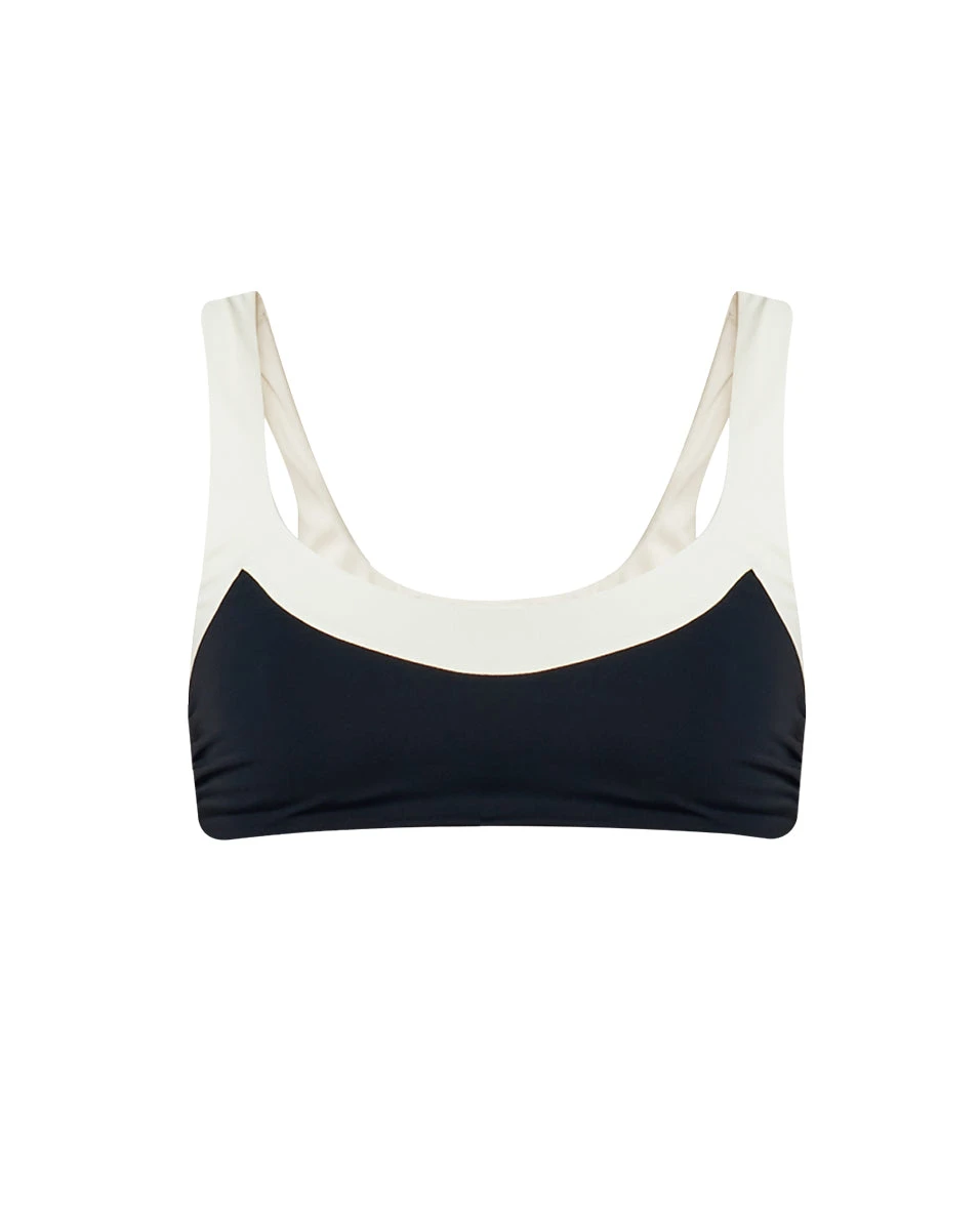 Our scoop-neck Adelia top in black and white colorblocking features a sporty-chic style that’s always on-trend. Pair with its coordinating bottom for a matching swim set, or try styling it with a printed bottom for a mix-and-match look.