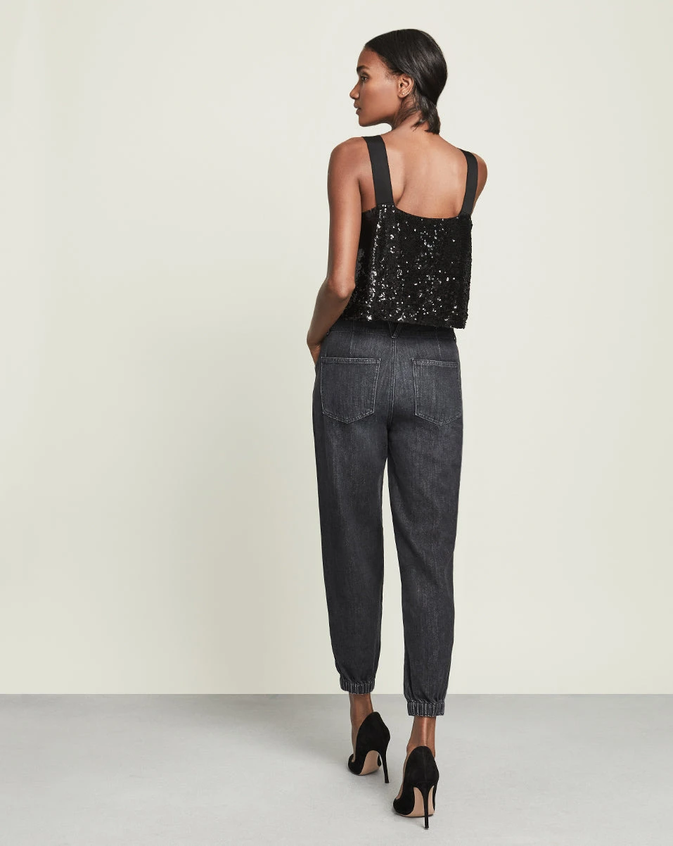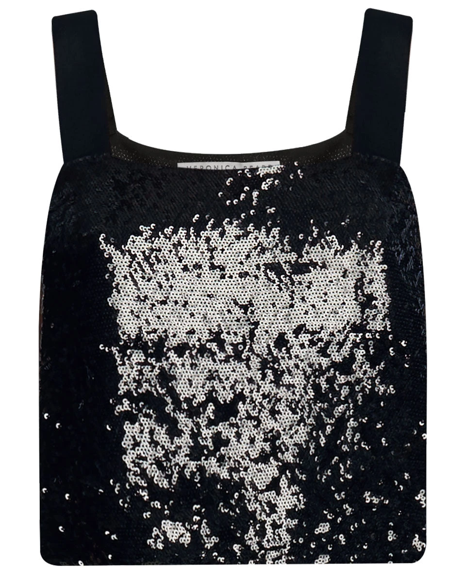 Our Adi top features allover sequins on a cropped and boxy tank silhouette. We love wearing this top with high-rise jeans and pumps, but it also makes for a striking look with sleek black trousers.