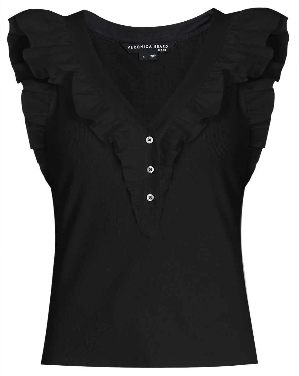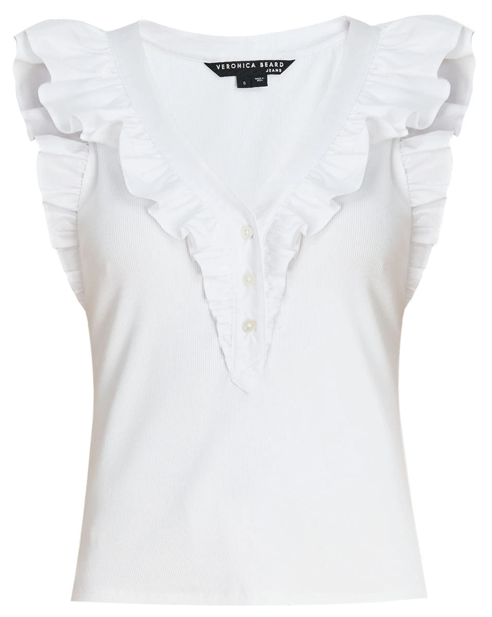 Our Adriana top in ribbed cotton features ruffled trims for a feminine look. Pair this casual yet elevated style with everything from jeans to skirts—it’ll quickly become a favorite either way.