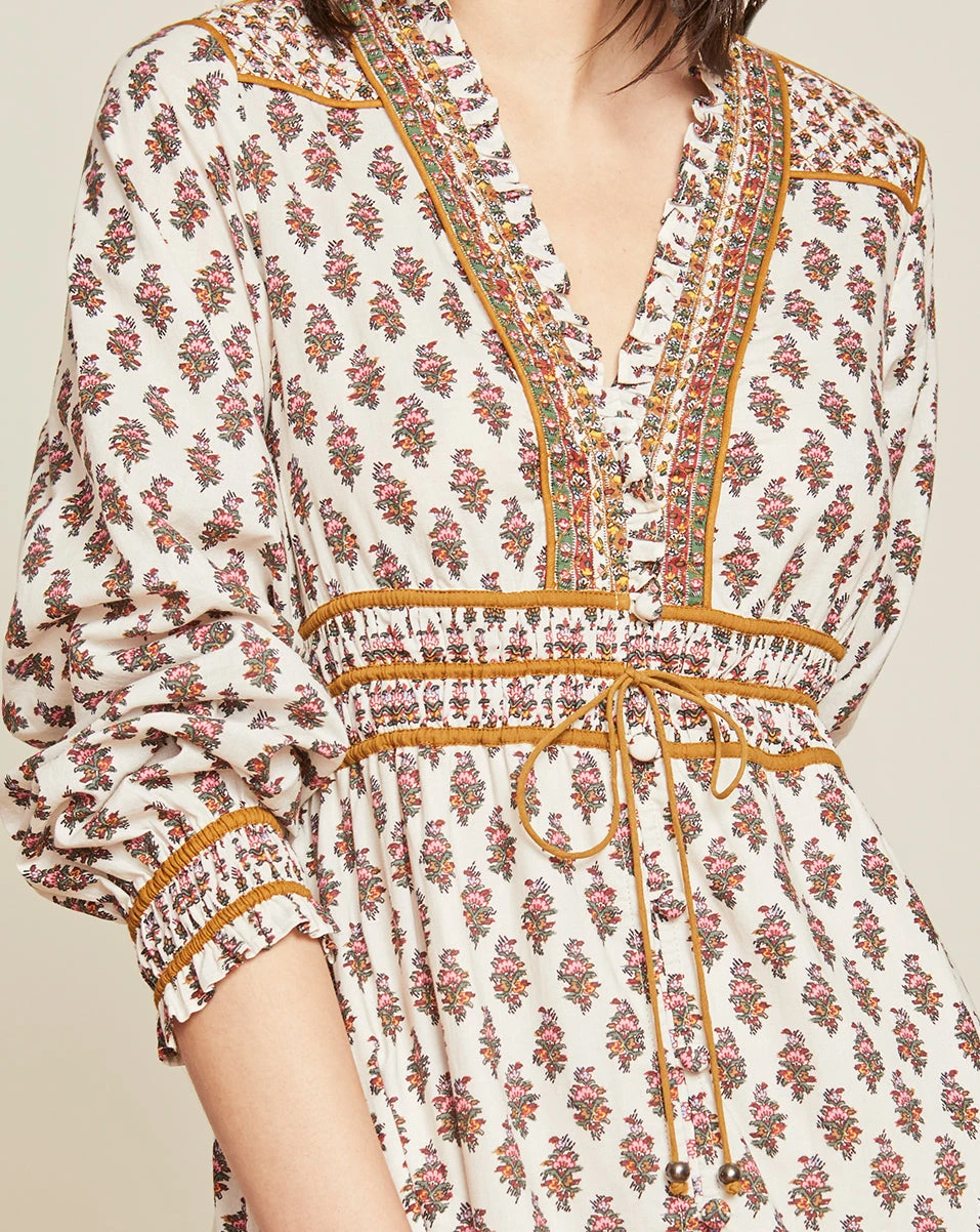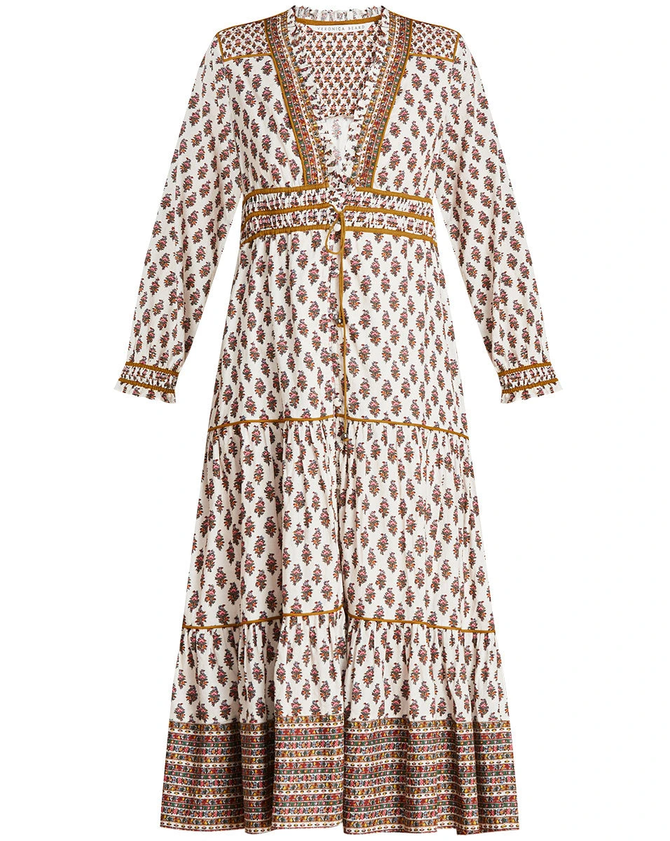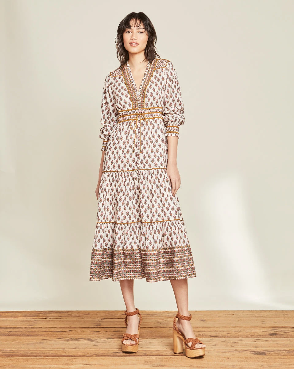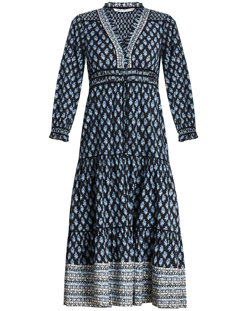 In our washed cotton-lawn, the Alessandra dress features a boho-floral motif and a midi length. Long sleeves, a tiered silhouette, and a drawstring waist complete the look of this wear-everywhere style. Pair with strappy flats and polished gold jewelry for an effortless, everyday outfit.