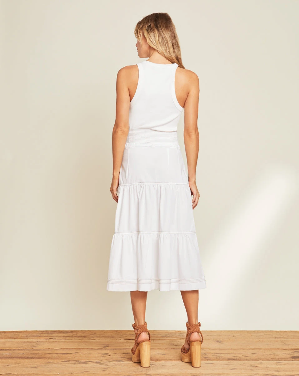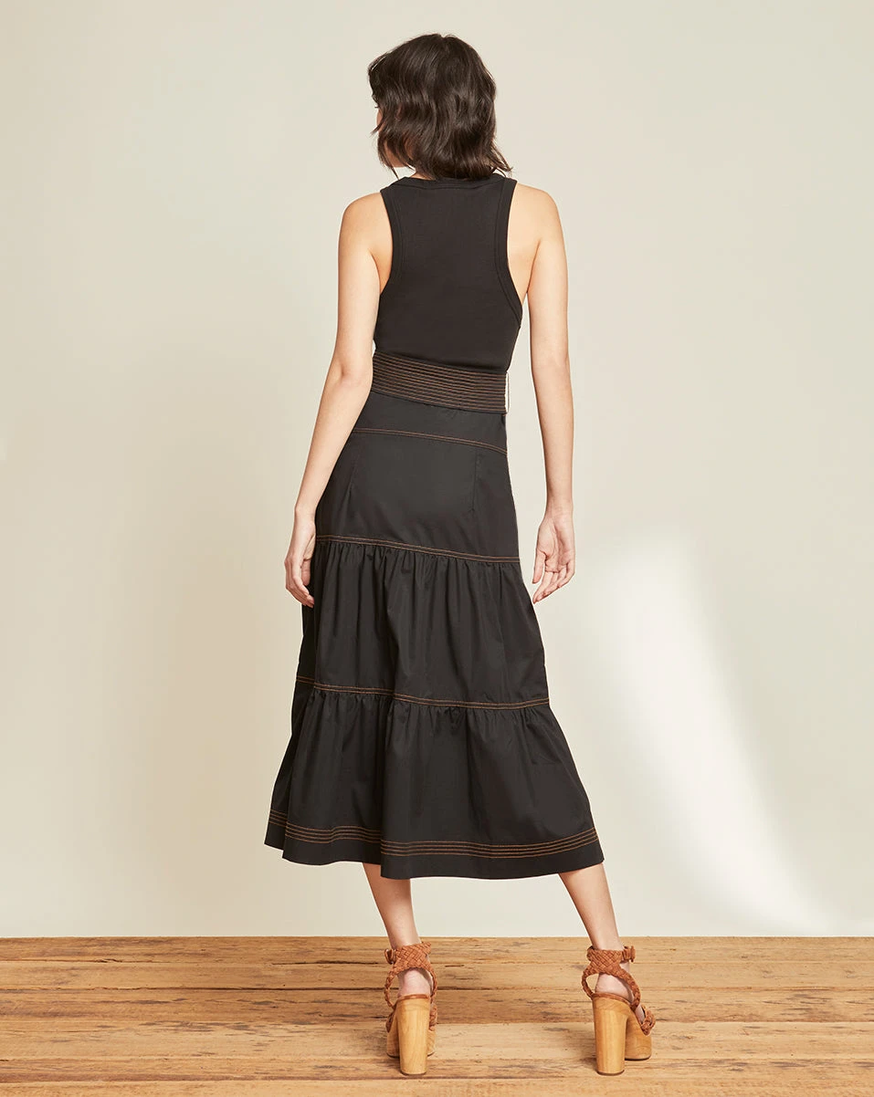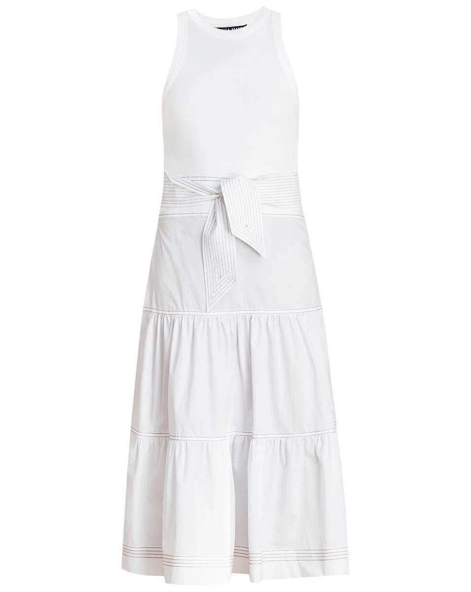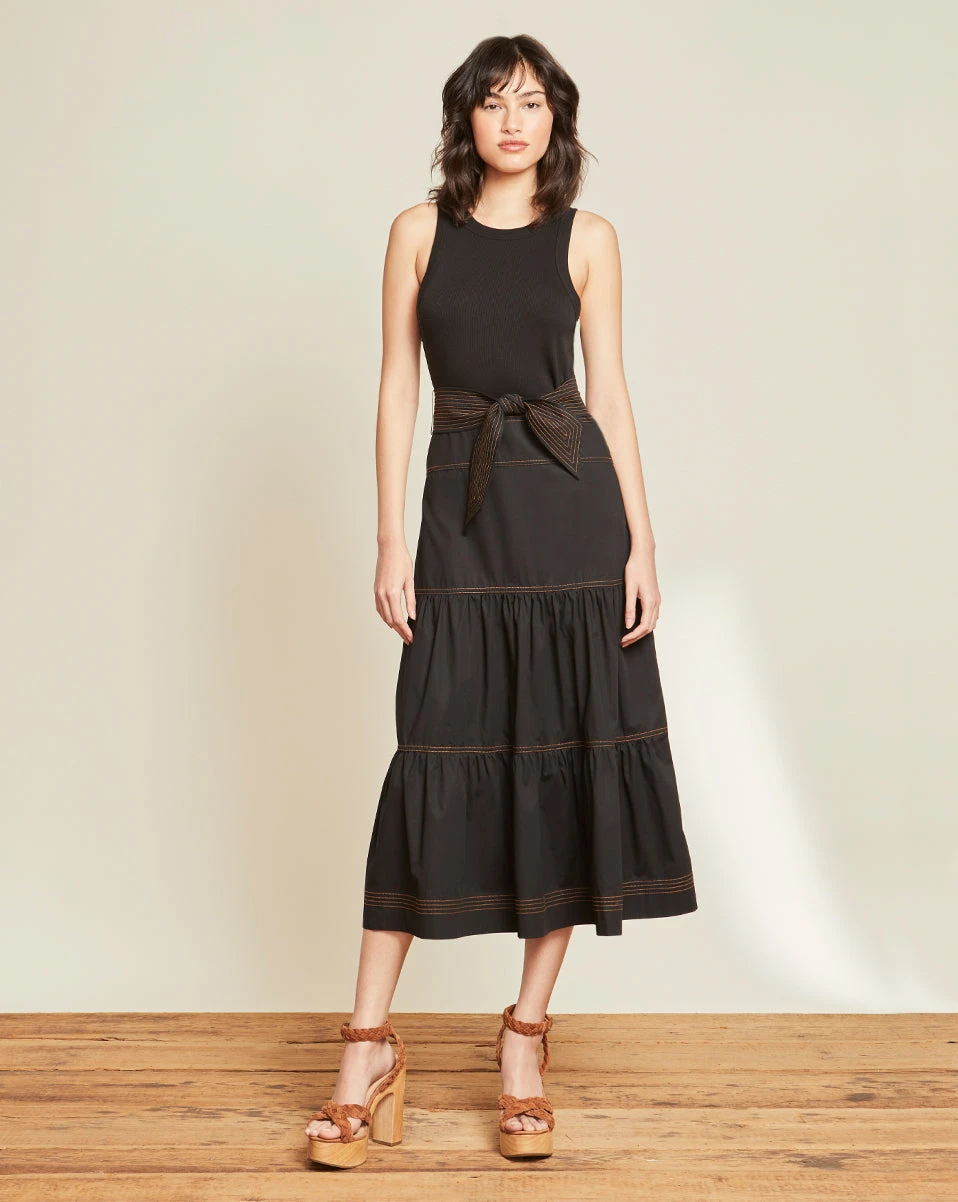 Our chic and sleek Austyn dress offers you an elevated look while remaining effortless in style. A ribbed tank, tie waist, and tiered hem give this piece a timeless and sophisticated appeal. Keep your look refined with strappy sandals and polished gold jewelry.