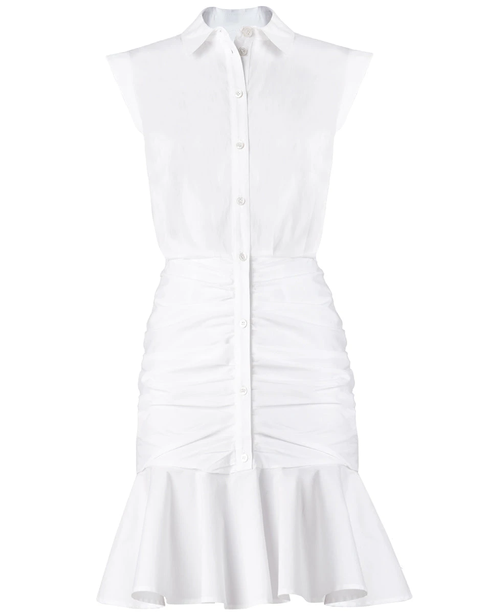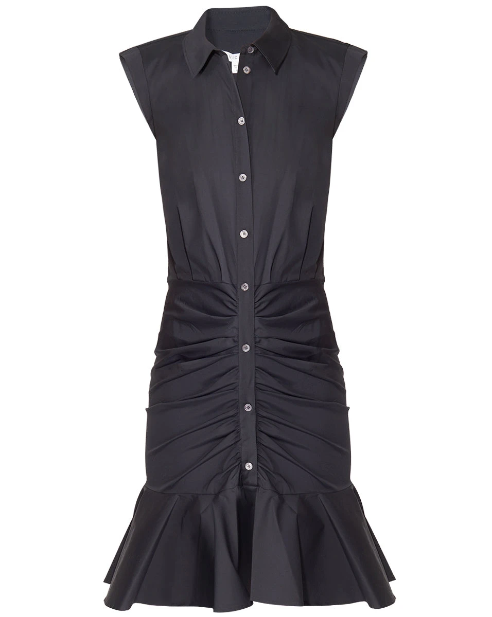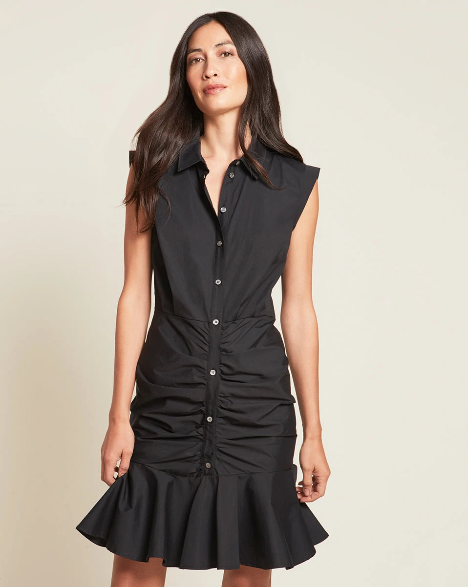 A modern update on the classic shirtdress, our Bell Button Down Ruched Shirtdress features flattering ruched details and a flounce skirt. It’s an instant wardrobe staple.