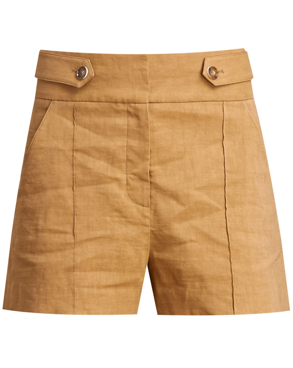 Tabs at the waist with decorative buttons define the look of our Betty shorts. A high-rise fit and linen blend complete the look of this effortless style. Tuck in your favorite blouse and finish with a jean jacket for everyday ease.