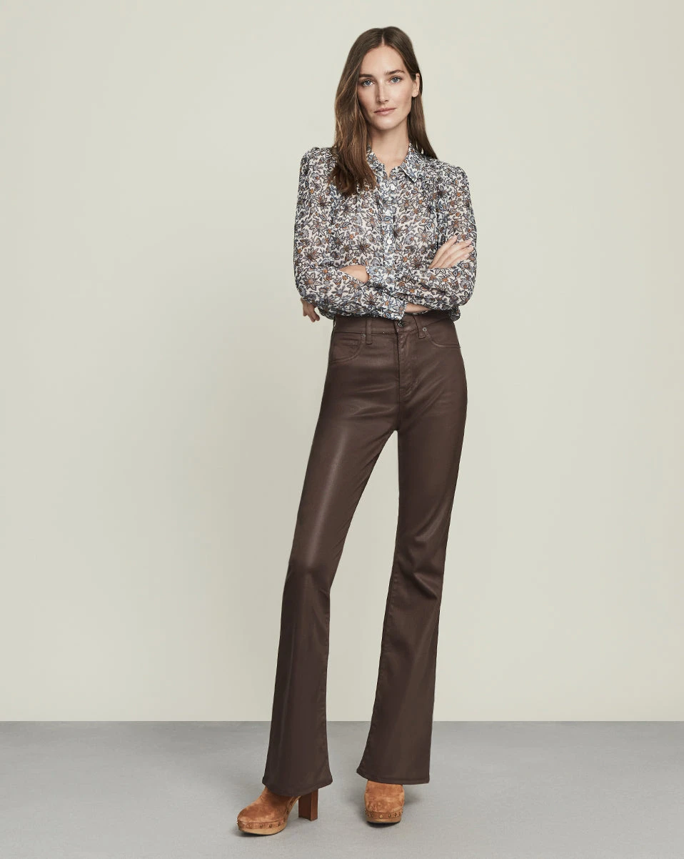 Our Beverly silhouette gets a sleek update this season in coated brown denim. With the same high-rise waist and long, skinny flare-leg finish you love, these pants are the new must-have in your wardrobe. Pair with an oversized knit and clog heels for an exercise in chic.