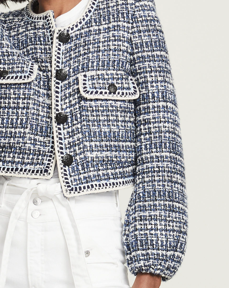 In multi-toned tweed that gives off visual interest and texture, the Brim jacket is a sophisticated style that’s as timeless as they come. Puffed sleeves and a solid trim complete the look of this must have. Wear with distressed jeans and stilettos for a uptown-meets-downtown look.