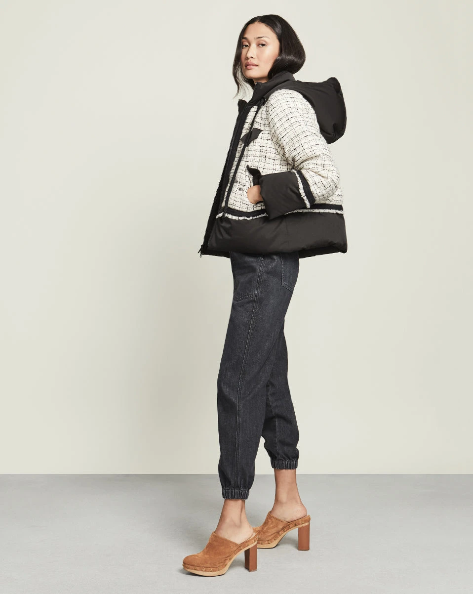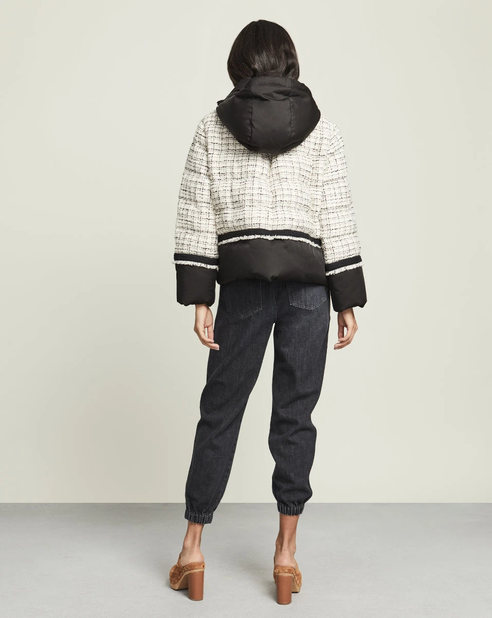 An elevated take on the puffer jacket, the Camrose features a tweed design mixed with quilted trims. A hoodie and oversized boxy fit keep this piece fashion-forward and street-style ready. Pair it with just about anything—we especially love it with jeans and sneakers.