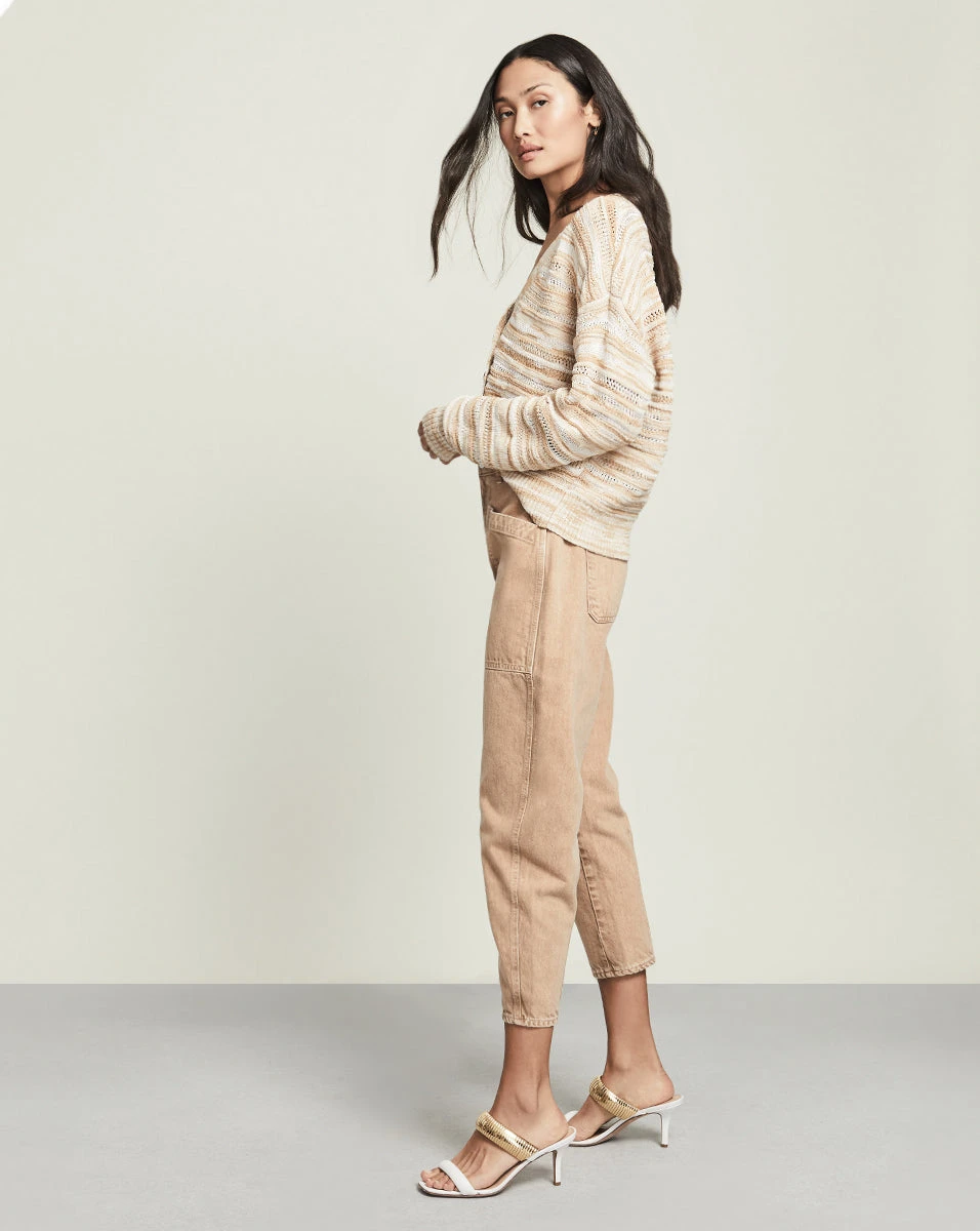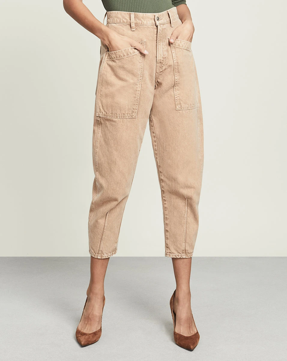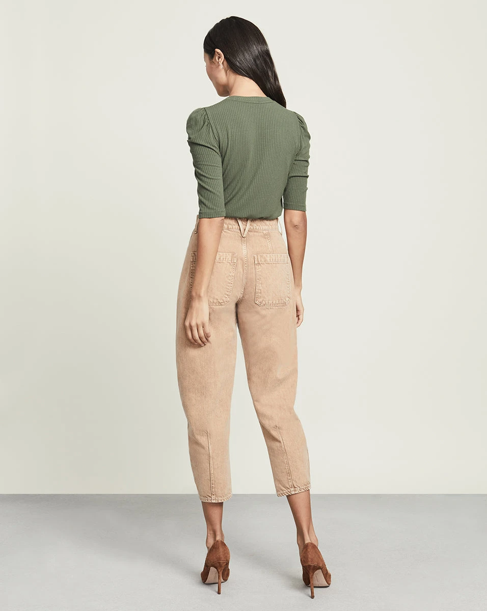 Our Charlie barrel jeans feature a curved leg that tapers at the ankle. A high waist and patch-pocket styling complete this casual style. Tuck in a sweater and finish with stilettos for a relaxed yet polished look.