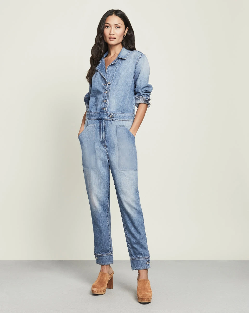 A denim jumpsuit is the key style you need this season, and the Oaklyn does it right. With a relaxed fit, two-tone denim wash, and front-button closures, this effortlessly cool piece is home run, every time. Wear it with clog heels for day; dress it up with stilettos and polished gold jewelry for night.