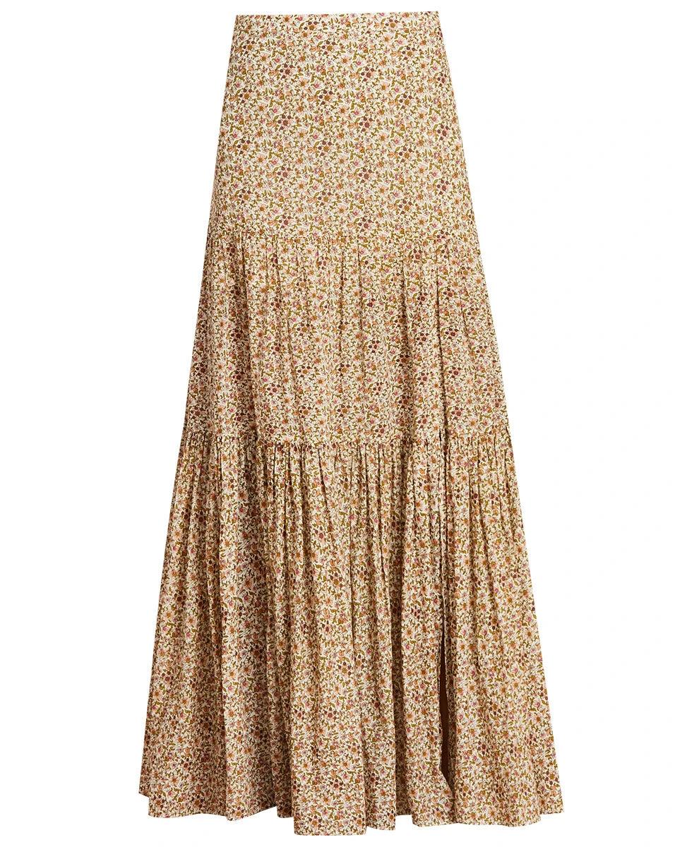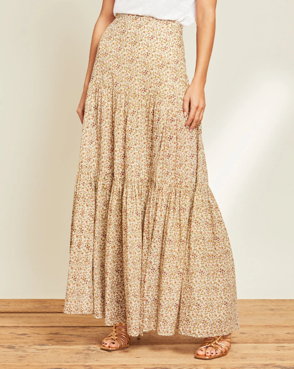 Our popular Serence skirt is back and updated in a micro-floral print. The maxi style showcases a tiered silhouette and high slit—perfect for an effortless yet elevated look. Wear with a denim top and flats for everyday ease, or use it as a cover-up on your next beach getaway.