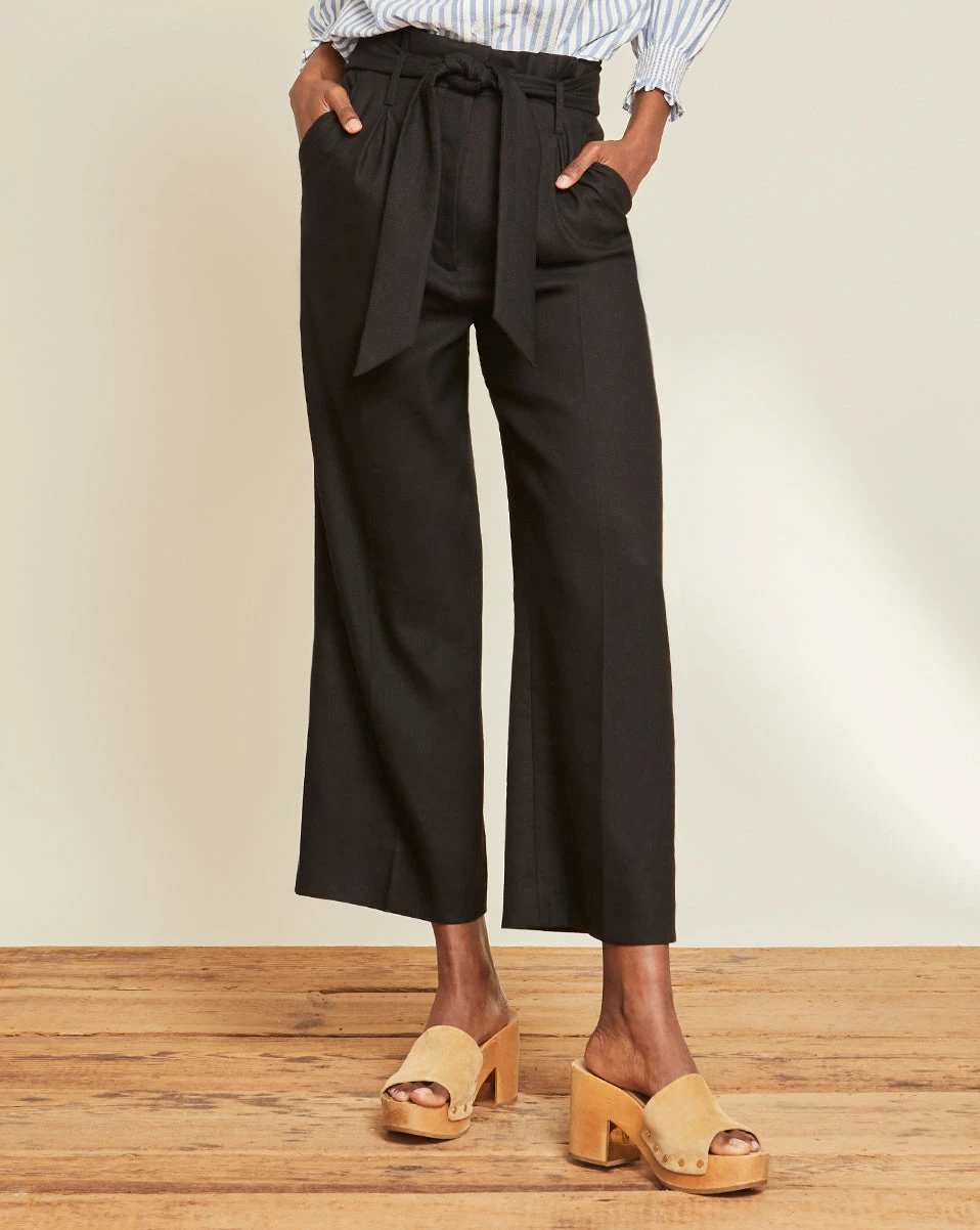Our linen-blend Elice pants feature a super high waist with a removable tie belt. A wide-leg silhouette and side pockets add to its relaxed style. Pair with a feminine blouse and sneakers to complete your look.