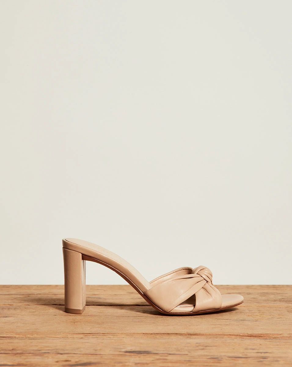 In nude leather, our slide-on Ganita sandals are perfect for every day and beyond. A knot-front vamp and 2.9″ block heel complete this chic and feminine style. Wear with any of your dresses or elevate a simple jeans-and-tee look—this must-have pair does it all.