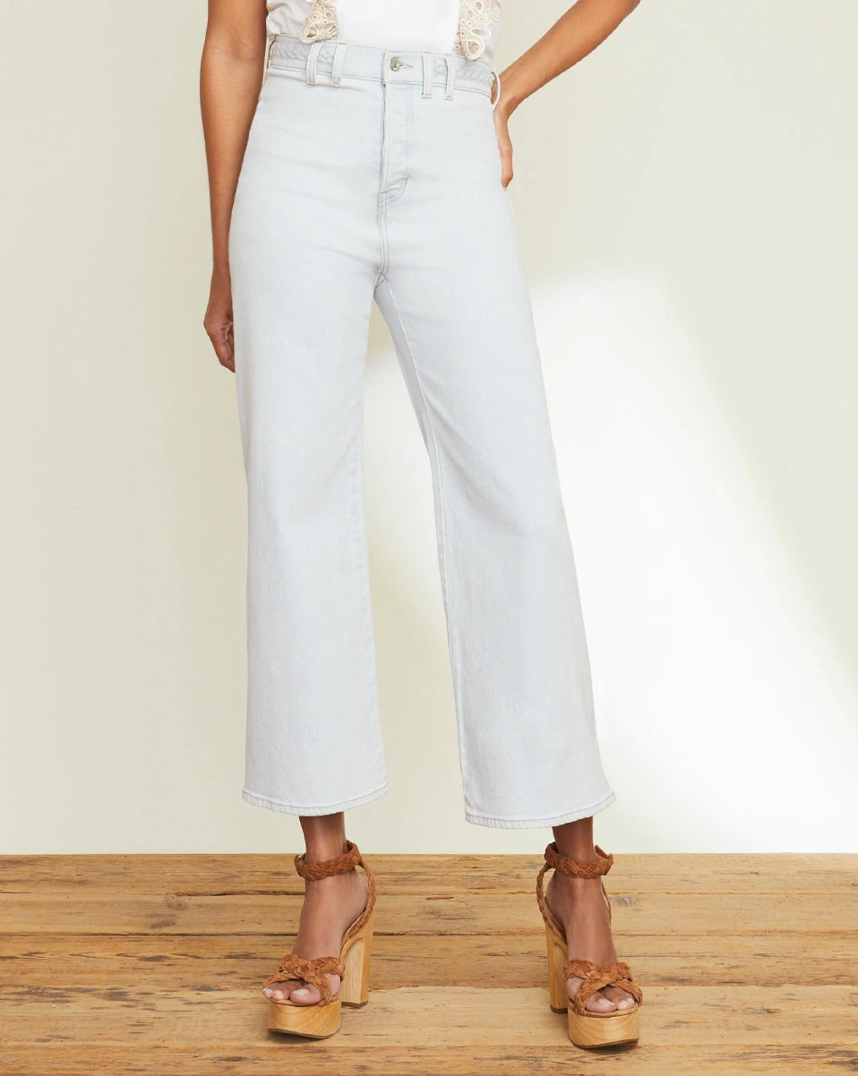 A braided detail at the waist defines the look of our Grant wide-leg jean. We love the high-rise and ankle-crop silhouette—it’s the perfect style to pair with all your romantic tops and statement heels.