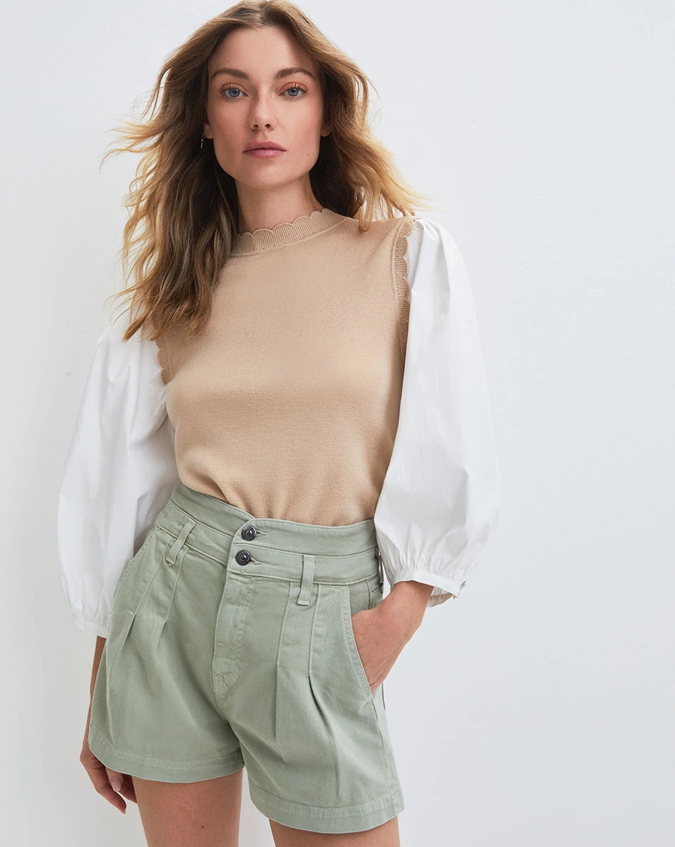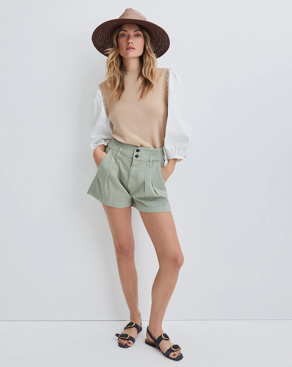 Our high-rise Jaylen shorts features a notched waistband and delicate pleating. Add a chic belt to define the waist and create a fashion-forward look.