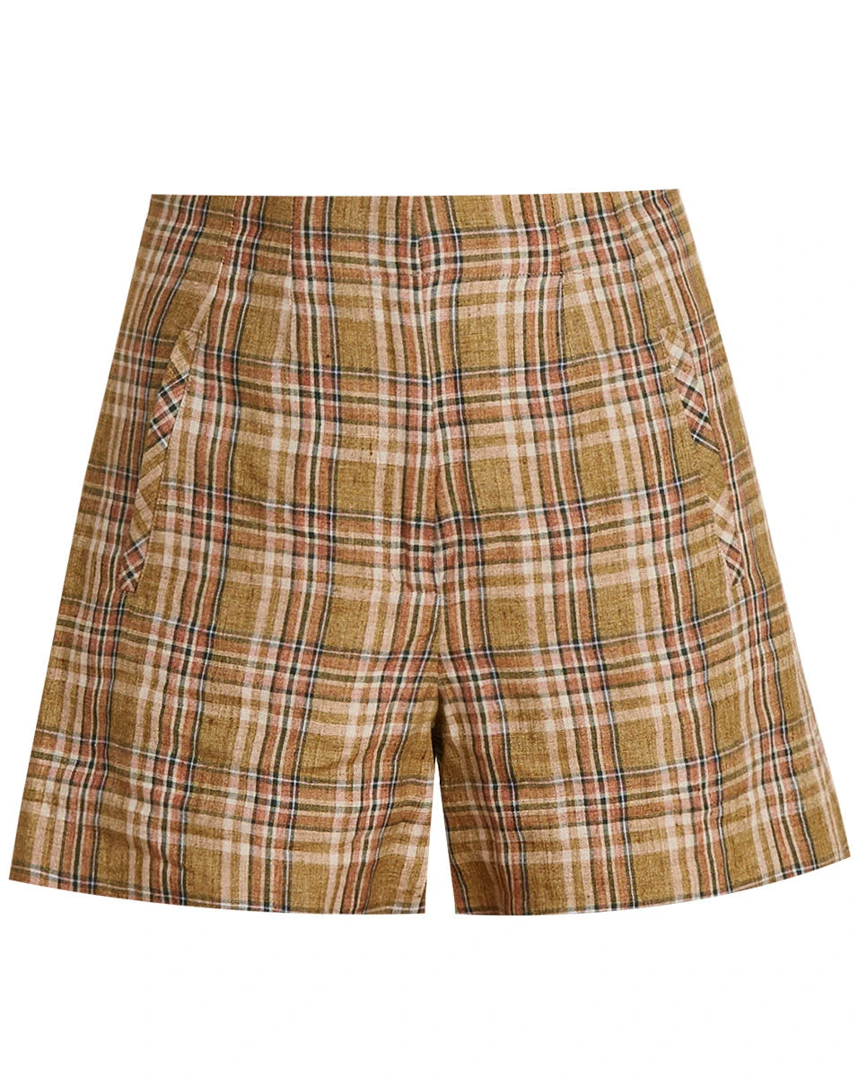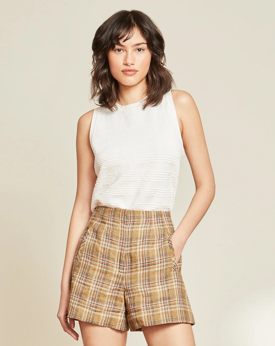 In our linen-plaid tailoring, the Jazmin is a chic short that’s effortless and elevated at once. A clean, streamlined design with side pockets completes the look of this sophisticated style. Wear with its coordinating jacket for a suiting moment, or dress it down with a tee and slides.