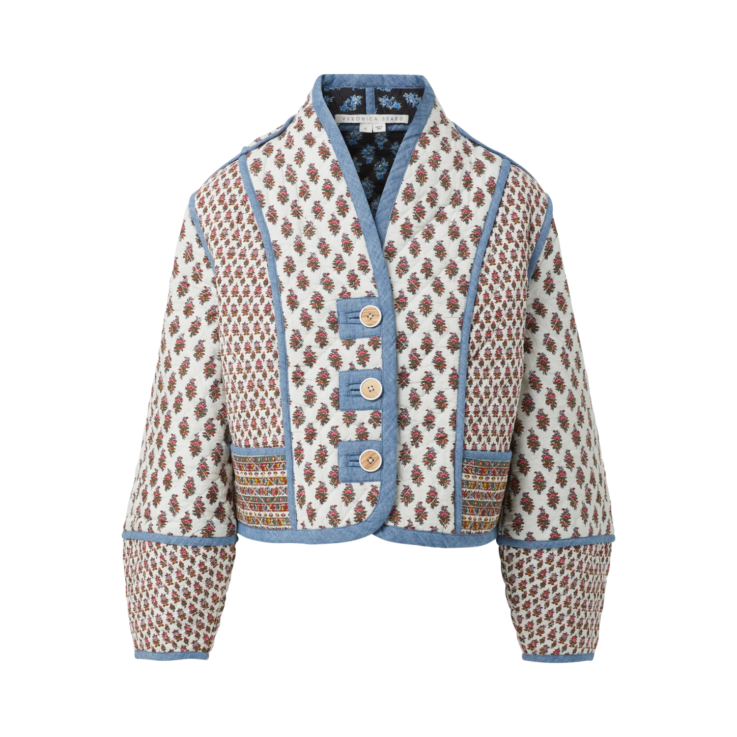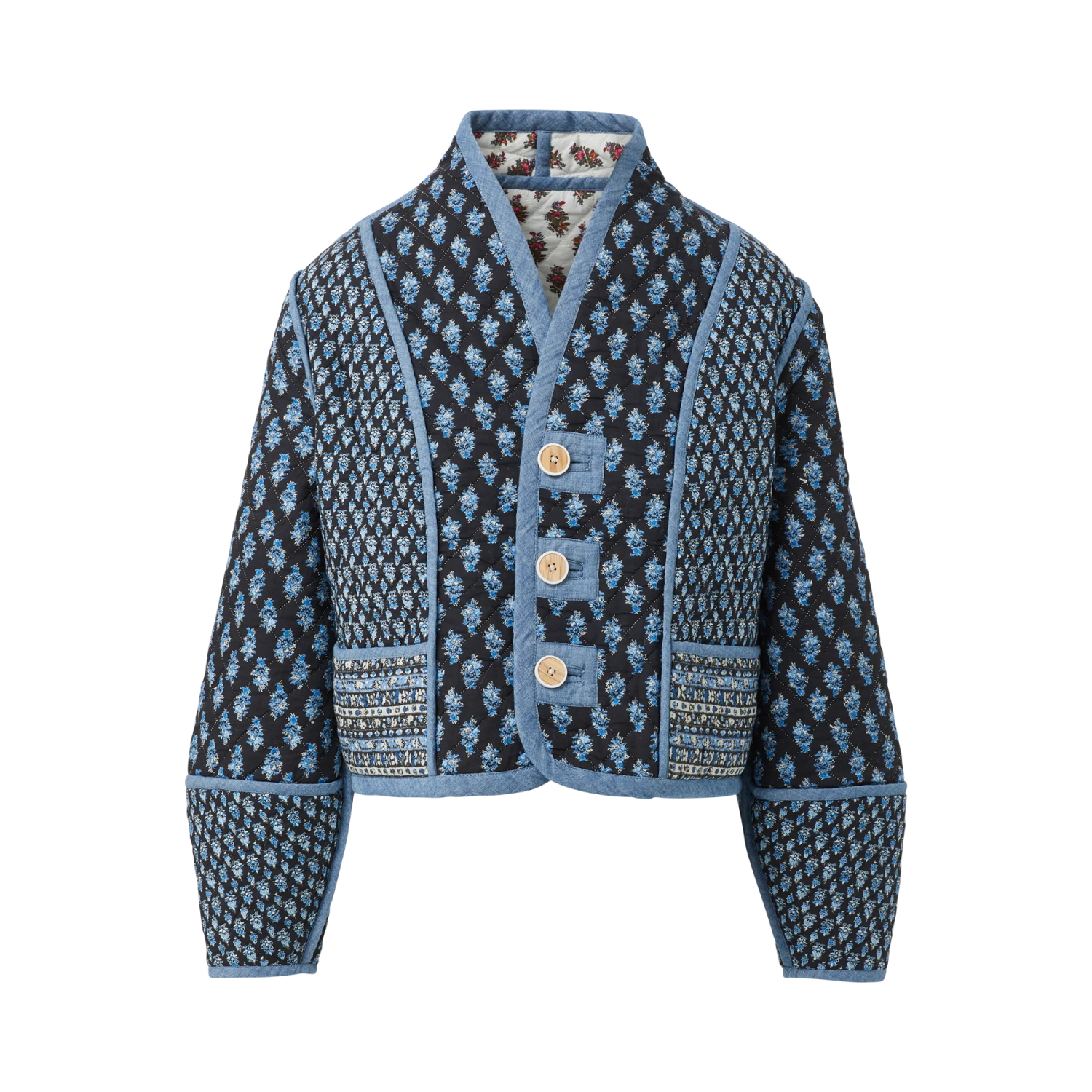 In our stamped floral print, quilted cotton fabrication, and chambray piping, the Kamila is the “it” jacket of the season. And it’s reversible—giving you two looks in one. Style the collarless, cropped style with anything and everything—we especially love it with wide-leg pants and strappy sandals for a chic take on everyday wear.