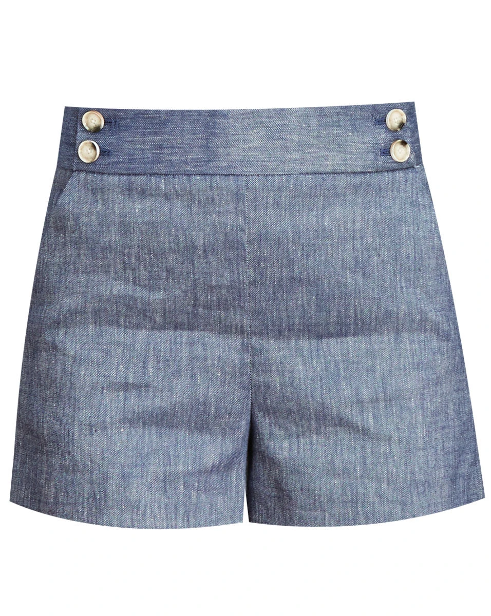 Our linen-blend Kimm shorts are accented with decorative buttons at the wide waistband. Wear the tailored style with a relaxed blouse and streamlined sandals for effortless cool.