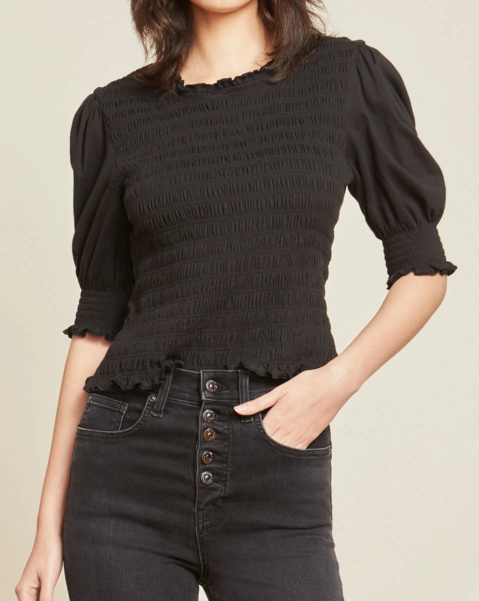 Our smocked Langston top offers you a romantic, feminine look in casual 100% cotton. Wear this fitted, puffed-sleeve top with everything from jeans to skirts for effortless ease.