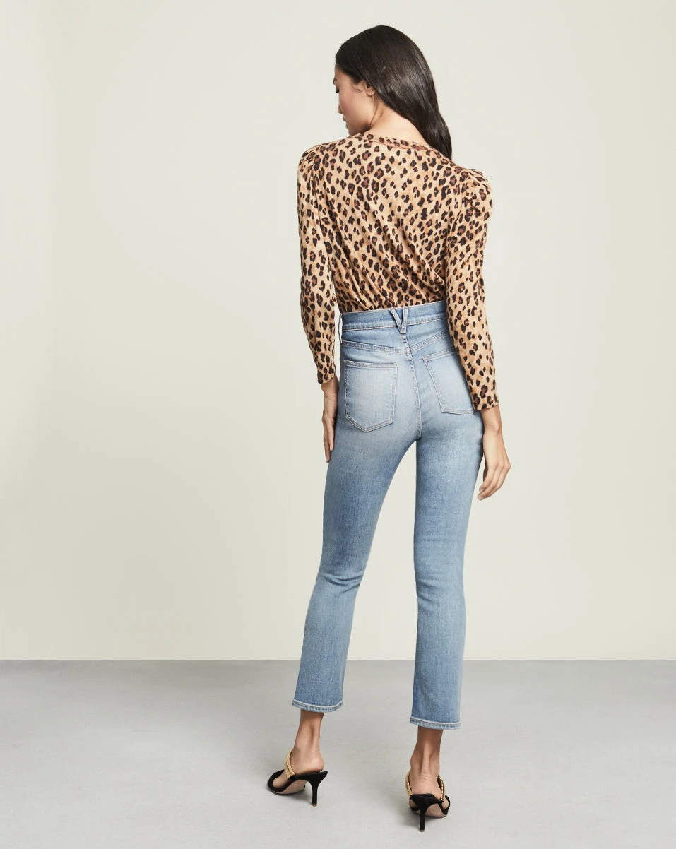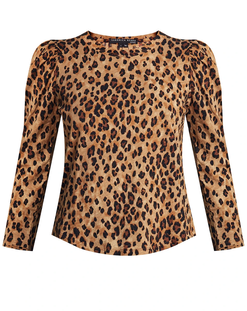 Our Porter tee features a bold leopard print, puffed shoulders, and a relaxed fit. Wear with skinny dark denim and boots for an elevated yet effortless look.