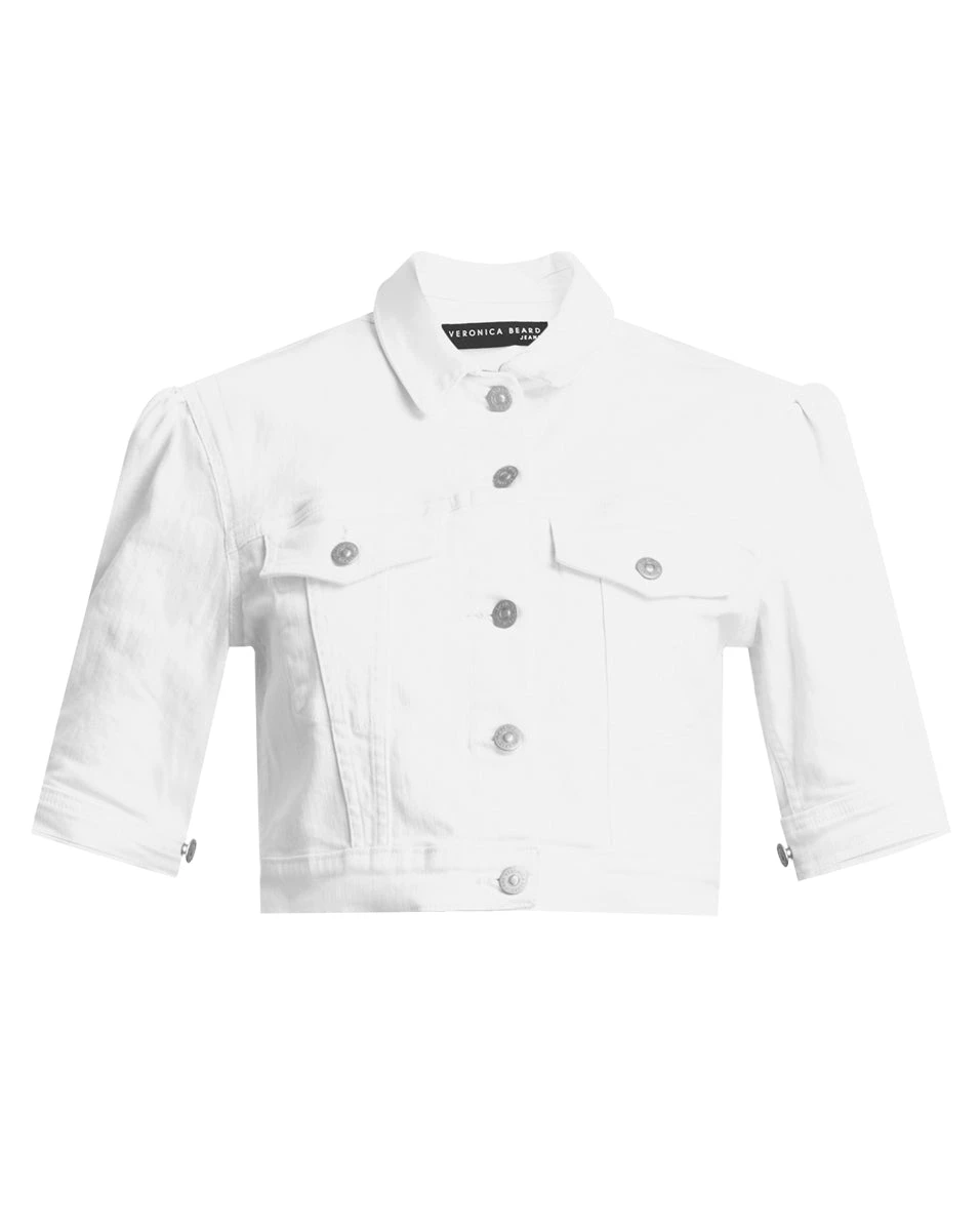 You need a short-sleeved jean jacket in your life and the Raina is it. This distinctive style, now in white denim, elevates the look of a classic jean jacket with its short sleeves, and is perfect for pairing with everything from dresses to shorts.