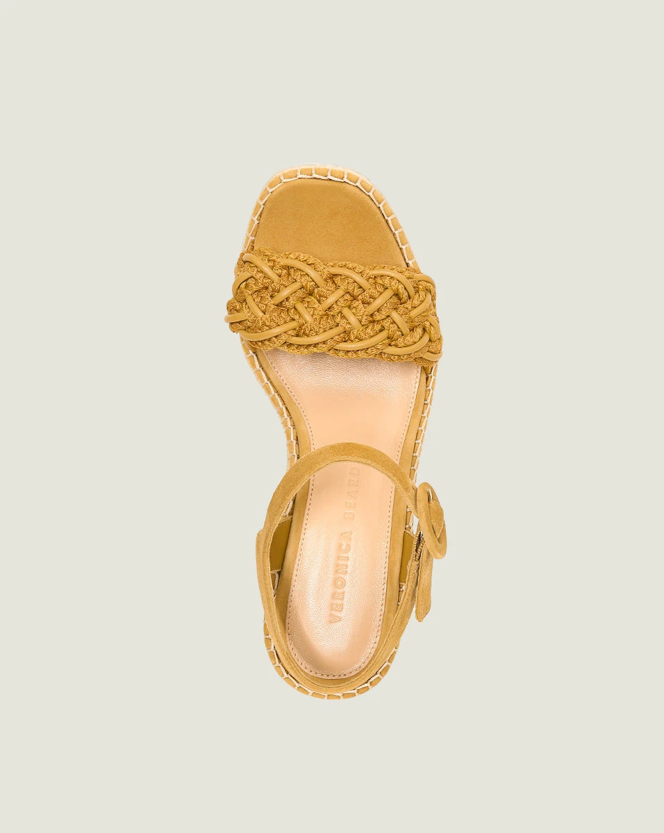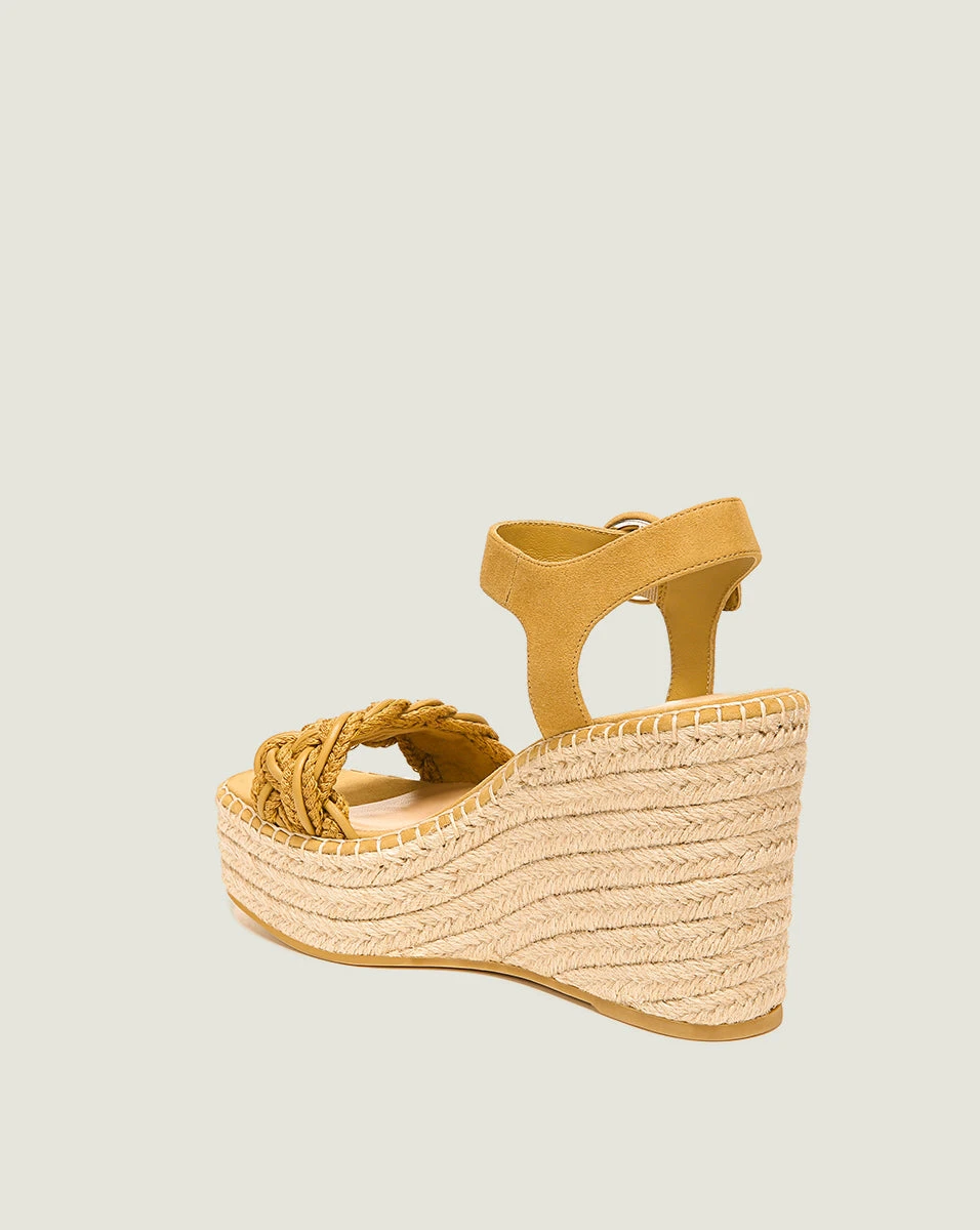 The Reema sandal features a substantial wedge platform and heel in jute, along with a braided rope and suede vamp. An ankle strap completes the look of this standout style. Wear with your favorite dress for the perfect warm-weather look.