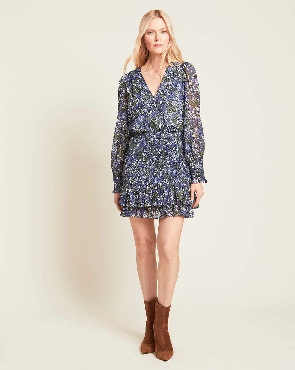 Our Saera minidress features a crossover V-neck, smocked hips, and ruffled flounced hem. Wear this flattering, printed style with everything from stiletto heels to white sneakers—it’s the ultimate in versatility.