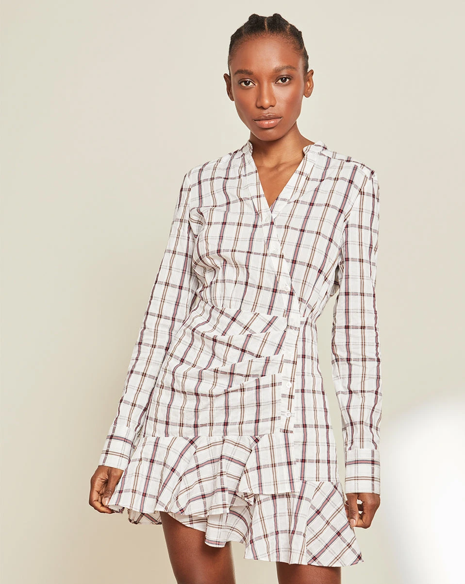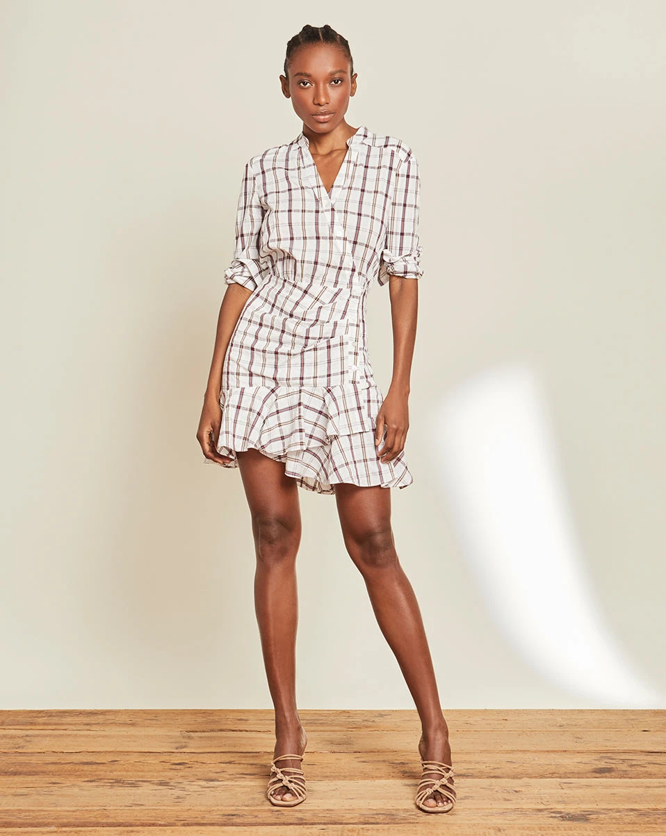 The everyday, casual dress you need—this is the Sherry. In our windowpane plaid, this effortless mini also features ruching at the skirt and an asymmetrical flounced hem. Pair with flats Monday-Friday; switch to sky-high wedges for your next girls’ brunch out.
