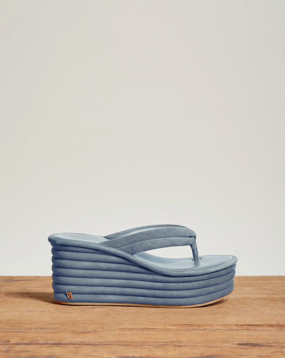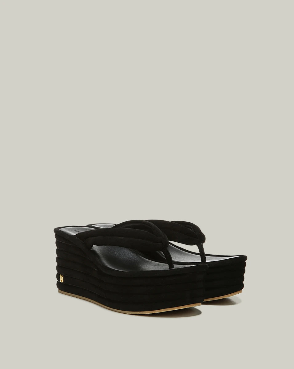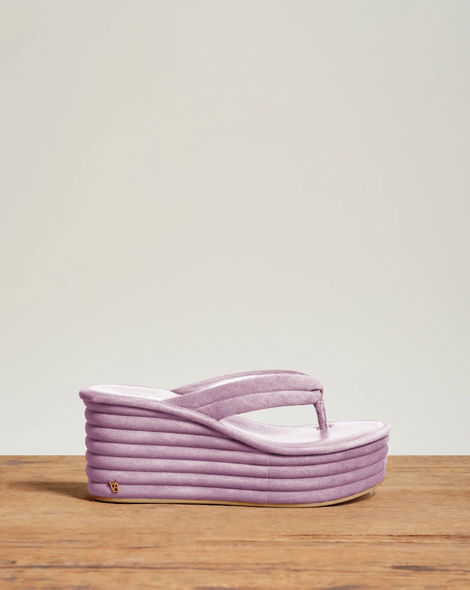 Our Geno flip-flop wedges give you the trending 90s look, but with polish. In sophisticated suede with an understated design, these statement sandals pair best with cropped jeans and a T-shirt.