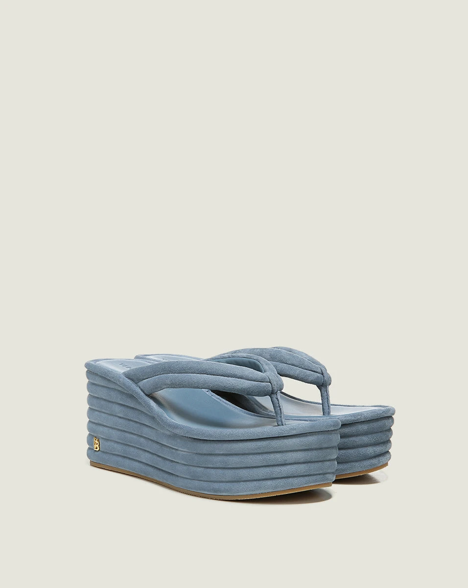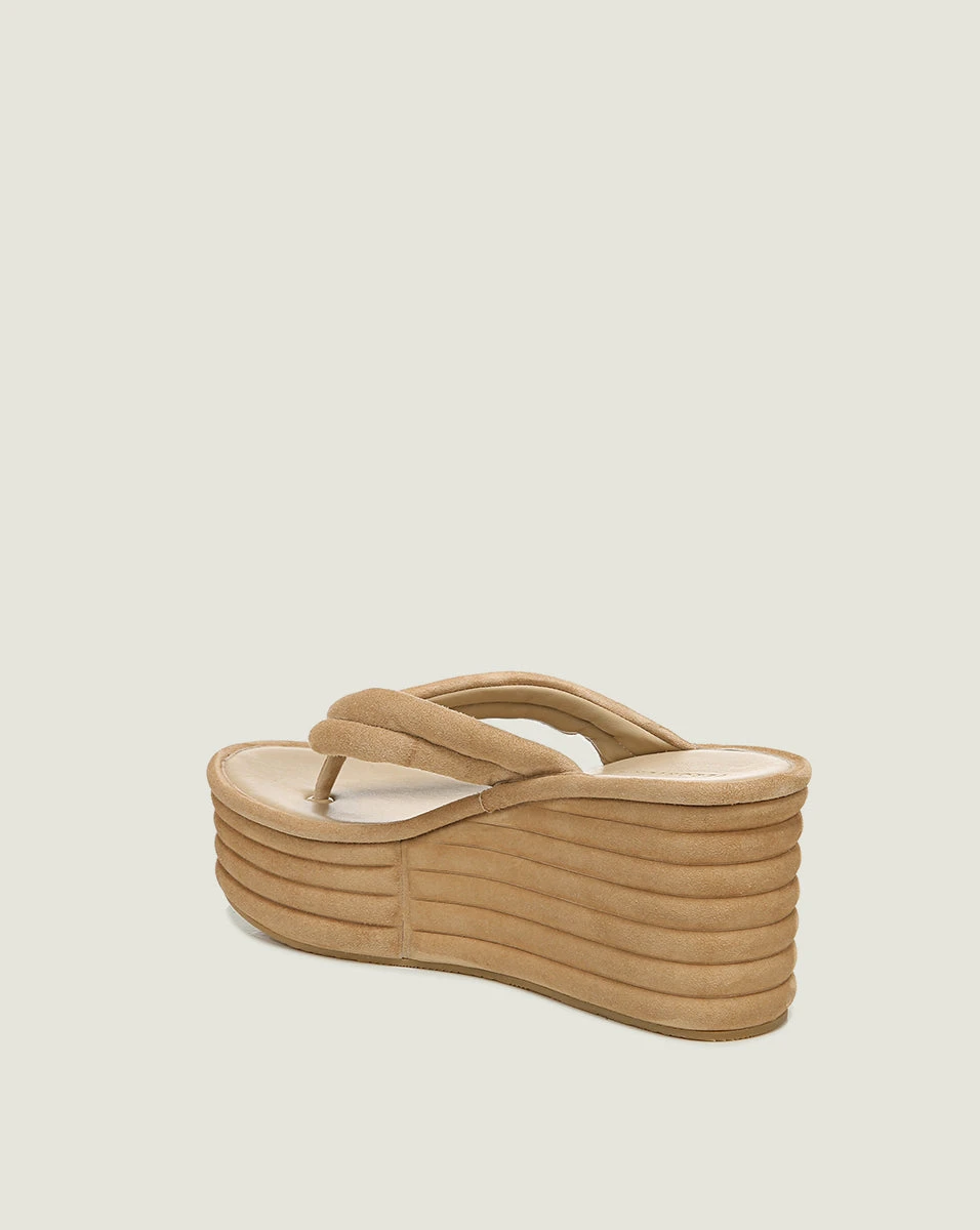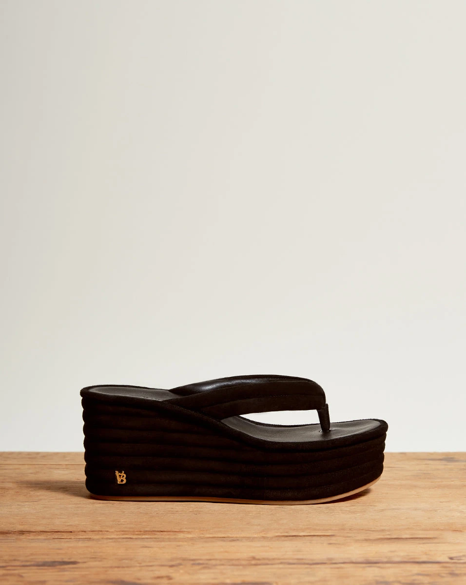 Our Geno flip-flop wedges give you the trending 90s look, but with polish. In sophisticated suede with an understated design, these statement sandals pair best with cropped jeans and a T-shirt.