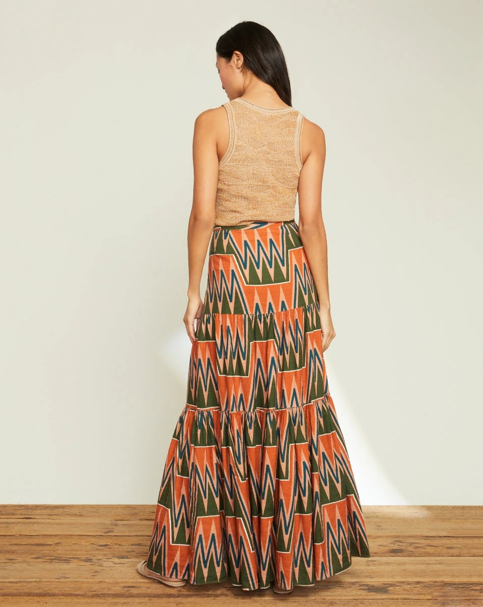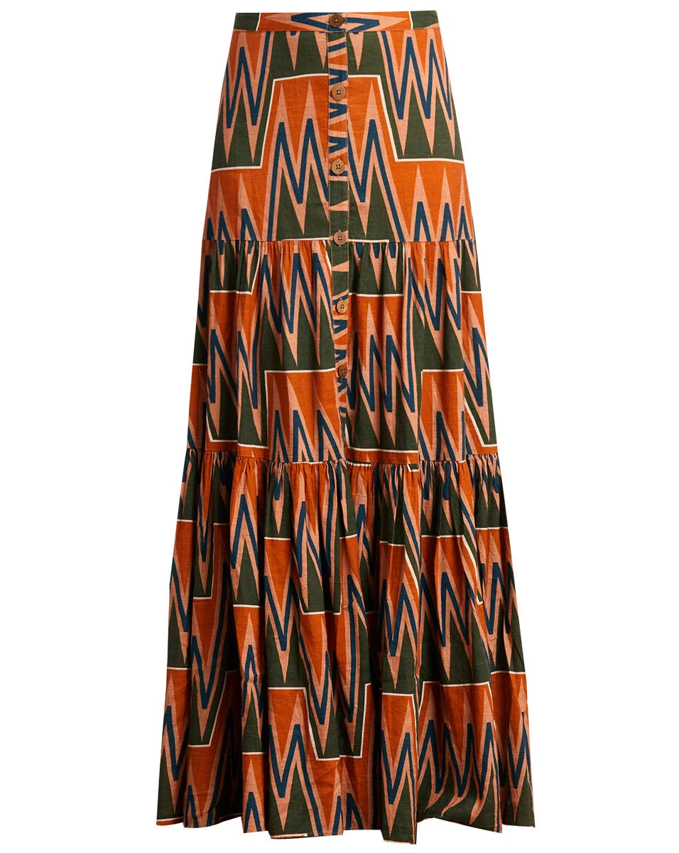 A graphic print in washed linen defines our Sundance maxi skirt. Front-button closures complete the look of this must-have style. Wear with its coordinating top for a matching-set moment, or dress it down with a white tank and slides for everyday ease.