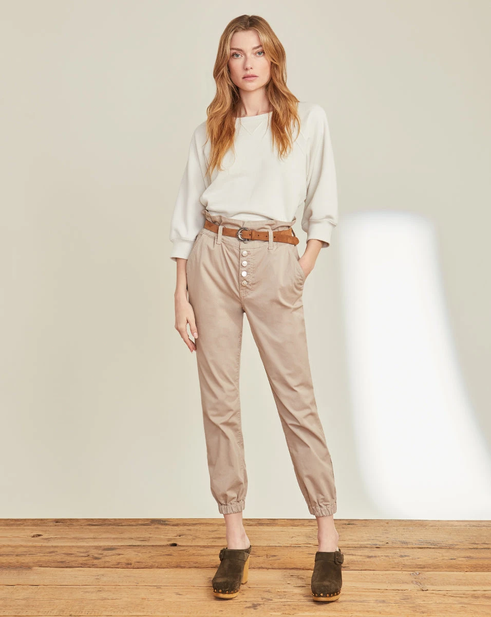 An elastic waist and hem give our Tedi pants a jogger-style look. We love dressing up this high-rise style with silk blouses: just add heels.