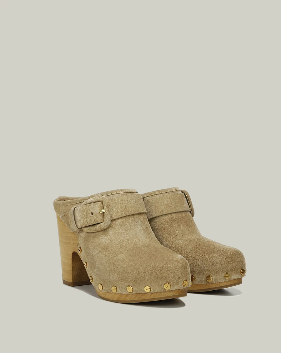 A buckled accent, studded trim and stacked heel define the effortlessly luxe Dacey Clog. Crafted from suede, this slip-on style instantly elevates flowy silhouettes and tailored separates.