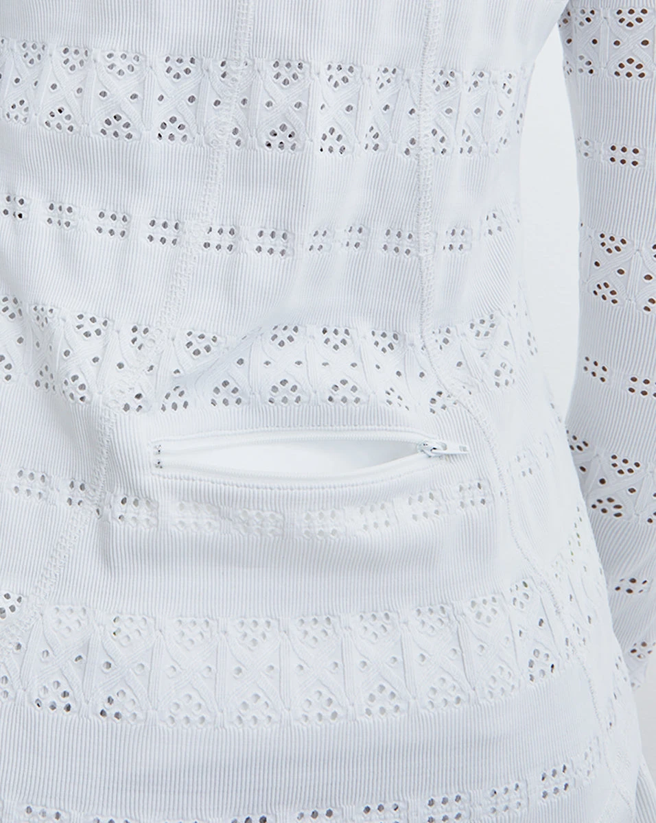 Introducing the limited-edition tennis capsule with L’Etoile Sport—for making moves, on or off the court. The zip-front jacket features L’Etoile Sport’s luxe 4-way stretch fabrication, in pointelle lace. A reflective neon green trim adds detail to this must-have style. Complete your look with its coordinating tank and skort.